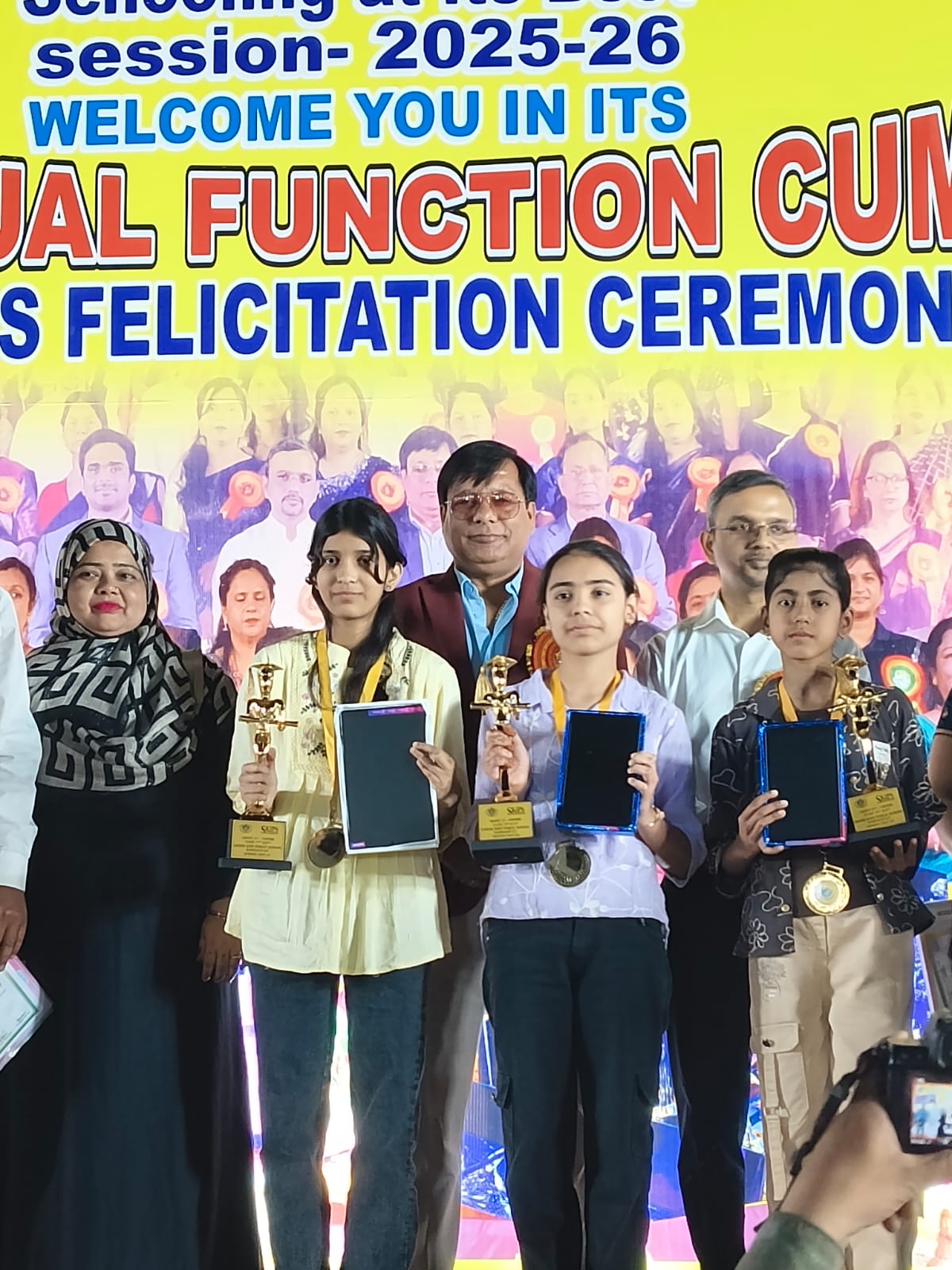 On this joyous occasion, the school proudly felicitated outstanding students of the academic session 2025-26 with awards, mementos, certificates, and special gifts for their remarkable achievements.
